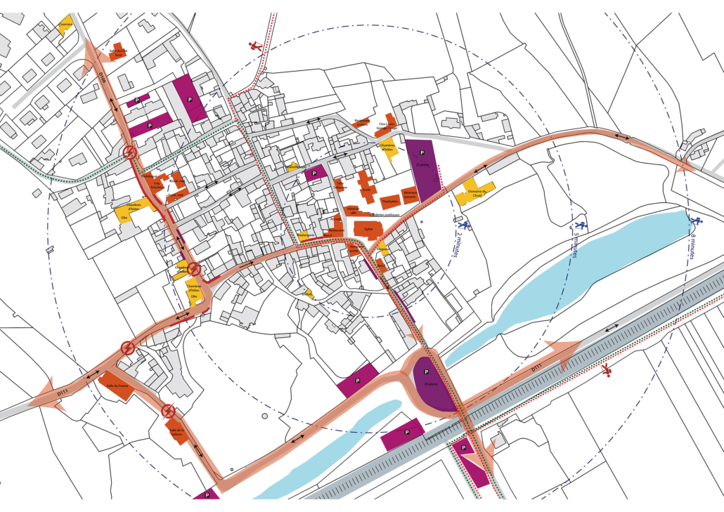 Afin de continuer la mise en valeur de son bourg, la commune de Savennières s’engage dans l’élaboration d’un plan de référence en s’appuyant sur des ateliers de concertation. L’objectif est clairement de recoudre le lien entre le cœur de bourg et la frange ligérienne ourlées de parcs et de châteaux. La réflexion se concentre sur la réorganisation de la place de la voiture sur l’espace public afin de pouvoir y proposer de nouveaux usages.