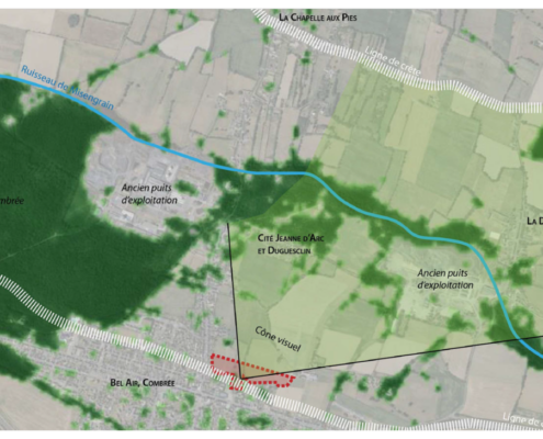 La gestion des eaux de pluie sur la frange nord du projet va permettre de valoriser le panorama sur le grand paysage à la fois pour les parcelles riveraines mais aussi pour la promenade dominicale des habitants.