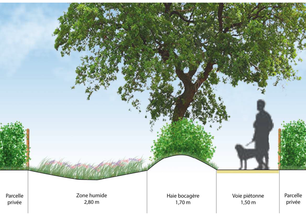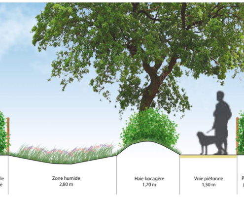 La conception végétale vise par ailleurs à redynamiser la biodiversité dans les écosystèmes voisins par la revitalisation des haies et le redéploiement des zones humides dans le quartier.