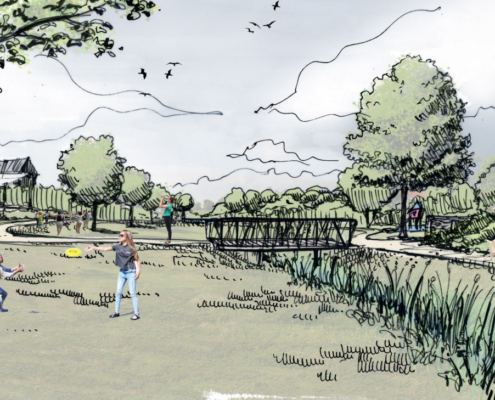 La commune de St Laurent du Mottay a souhaité se doter d’une vision stratégique pour aménager le vallon de sa coulée verte. La démarche s’est tenue en deux ateliers de co-construits avec les habitants et un travail de terrain avec les élus pour recomposer des espaces aujourd’hui très morcelés.