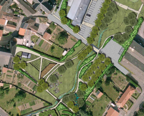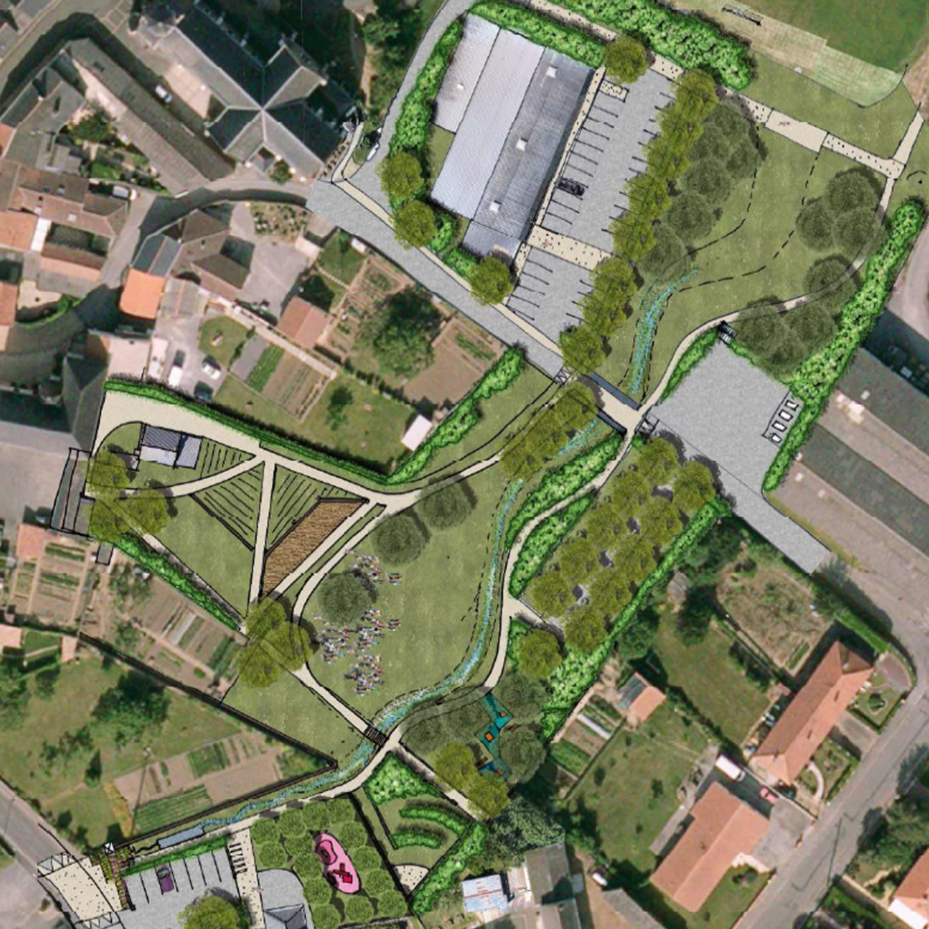 Véritable cœur vert du bourg, la commune a souhaité mettre en œuvre un projet qui s’intéresse autant à l’espace de vie constitué qu’à sa gestion, dans un souci de durabilité.