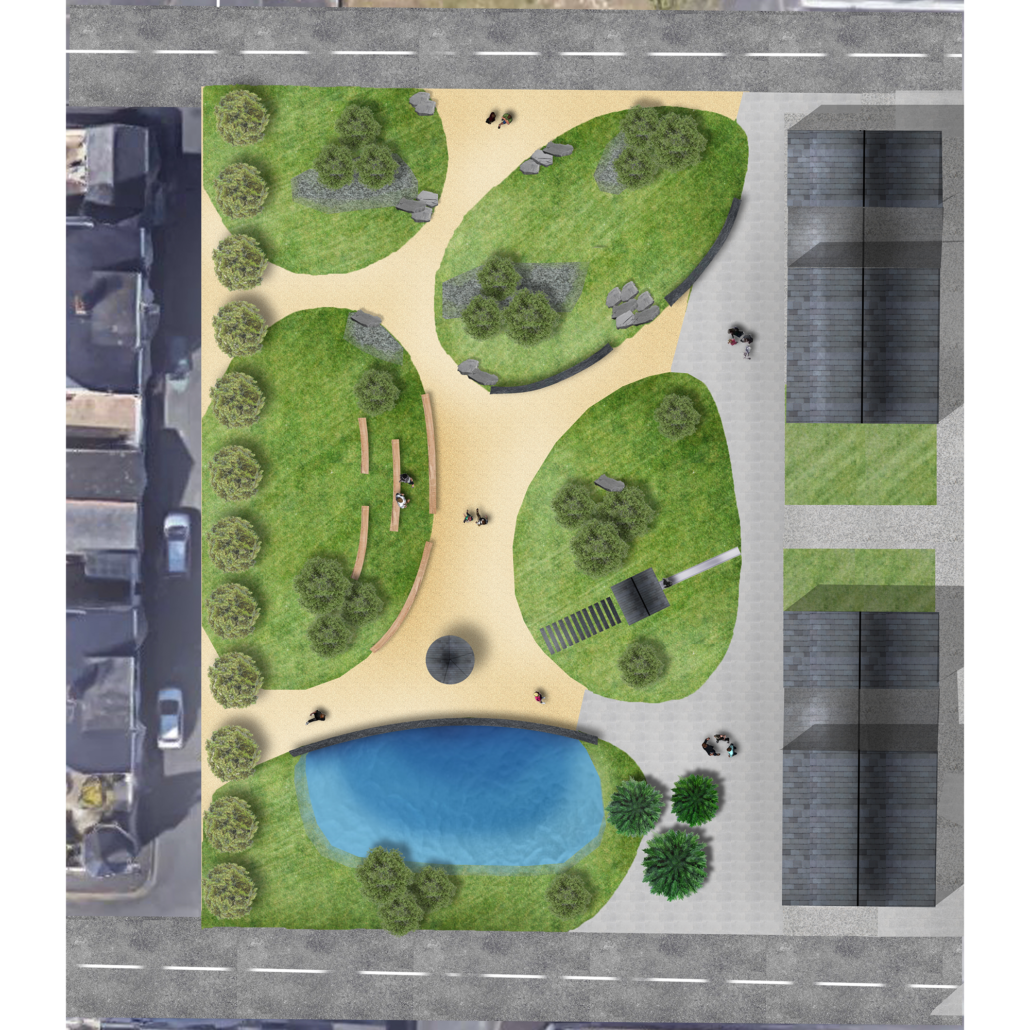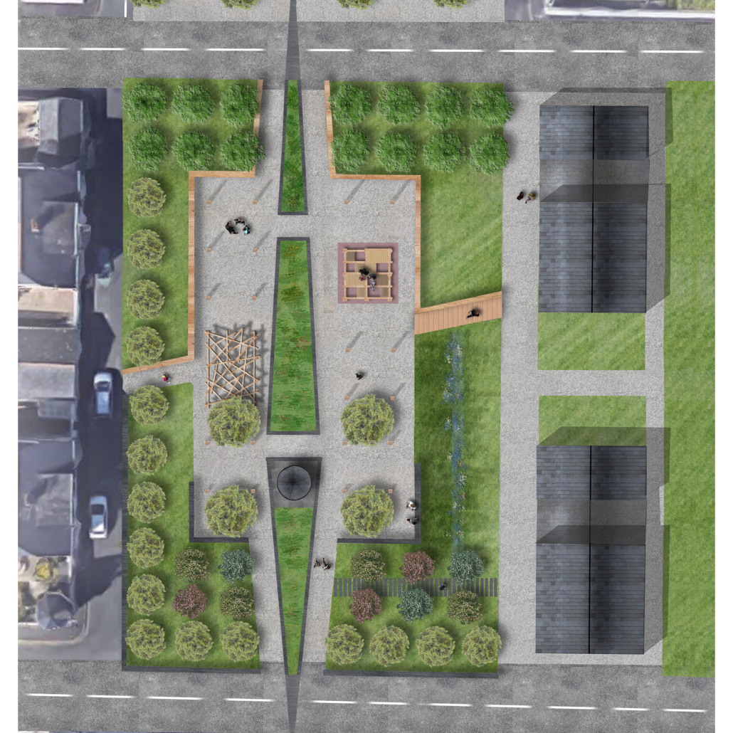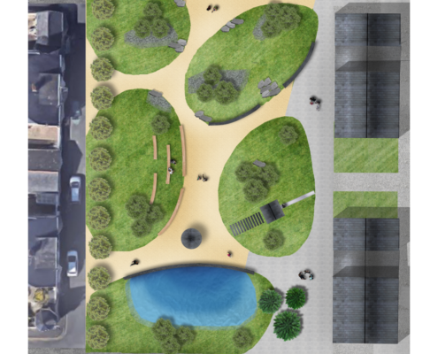 Espace aujourd’hui peu utilisé, la Place des Tellières offre un potentiel d’aménagement intéressant lié à la proximité d’un gros programme de logements et la délocalisation envisagée du marché. Valorisant un quartier ouvrier témoin d’un passé industriel marqué par la production ardoisière et les anciennes allumetteries, le projet s’inspire de ces racines pour proposer de nouveaux usages sur la place et recomposer des ambiances variées déclinant l’identité ardoisière et une nouvelle halle aux trélazéens.