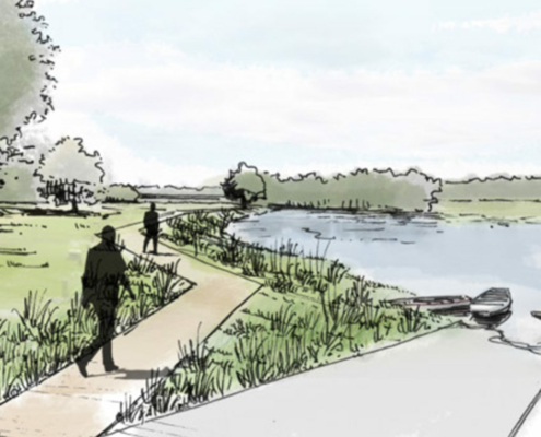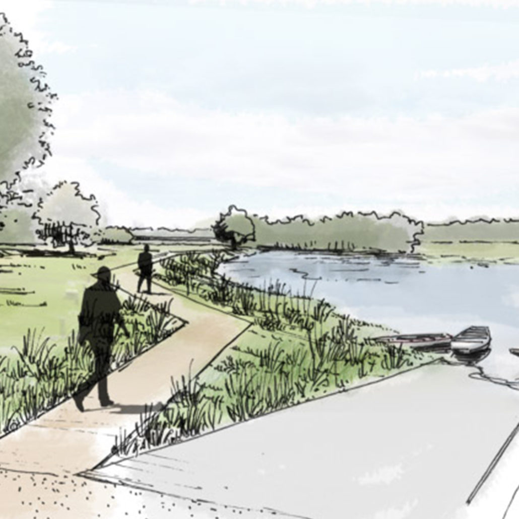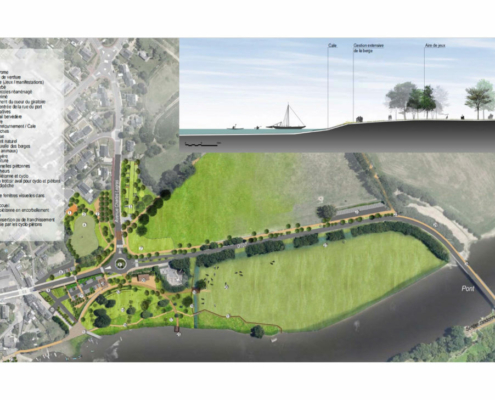 Renouer des liens historiques entre un bourg et sa rivière au travers d’un aménagement touristique respectueux de l’environnement et adapté aux inondations.