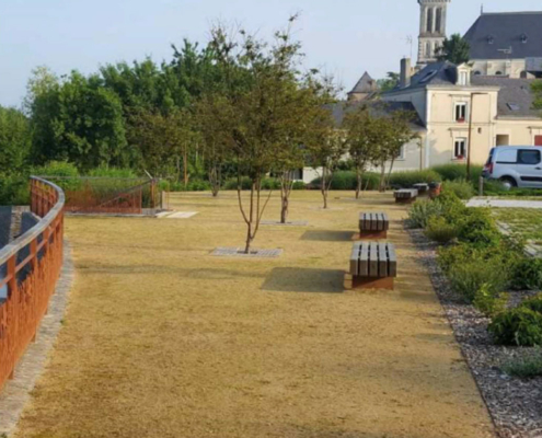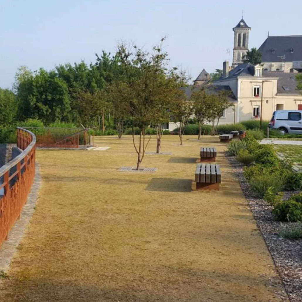 Pour renouer le lien avec les Basses Vallées Angevines, le projet remet en scène l’entrée de bourg de Cantenay-Epinard en réhabilitant les prairies inondables de la Mayenne. Des ateliers participatifs en co-conception ont permis aux usagers de faire émerger leurs attentes. L’aménagement de nouveaux espaces de loisirs en lien avec le coeur de bourg s’est fait dans le respect et la mise en valeur de l’identité des basses vallées angevines (Espace Natura 2000) grâce à un chantier conduit dans une démarche éco-responsable et une gestion différenciée.
